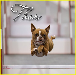 Thor is a 20lb Boston Terrier, born May 1/2022. Thor got to learn his basics of the Flyball game in Belleville, Ontario. We then joined the “Ready Set Go” flyball club in March of 2025.